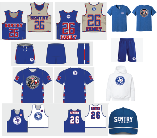Welcome to the uniform store for Sentry Lacrosse! All game uniform, practice wear, and spirit wear is available below. Please input the player number provided by the club.  Sizing samples are available at Not Just Soccer Dallas and Not Just Soccer Southlake. All orders must be placed online.